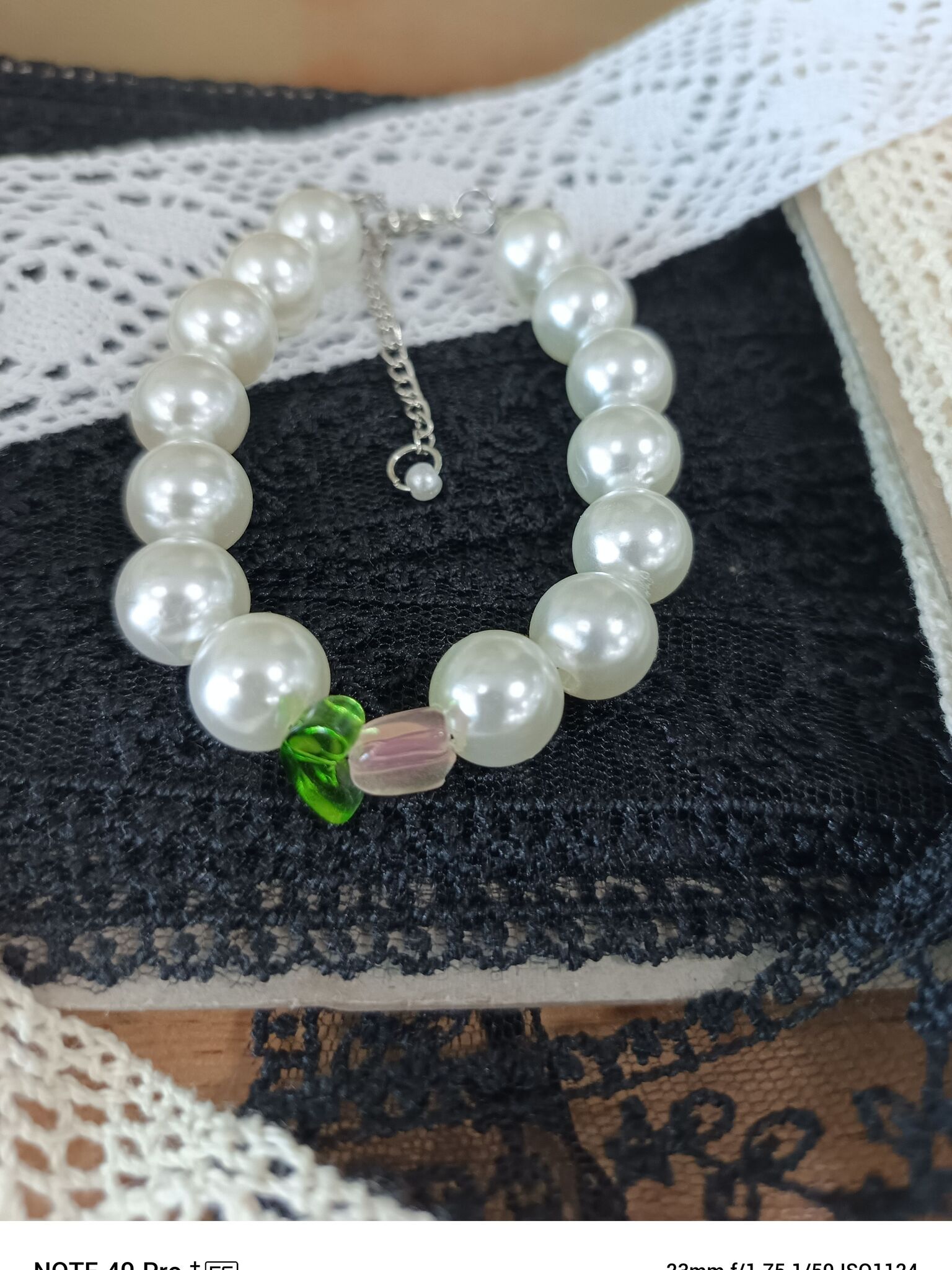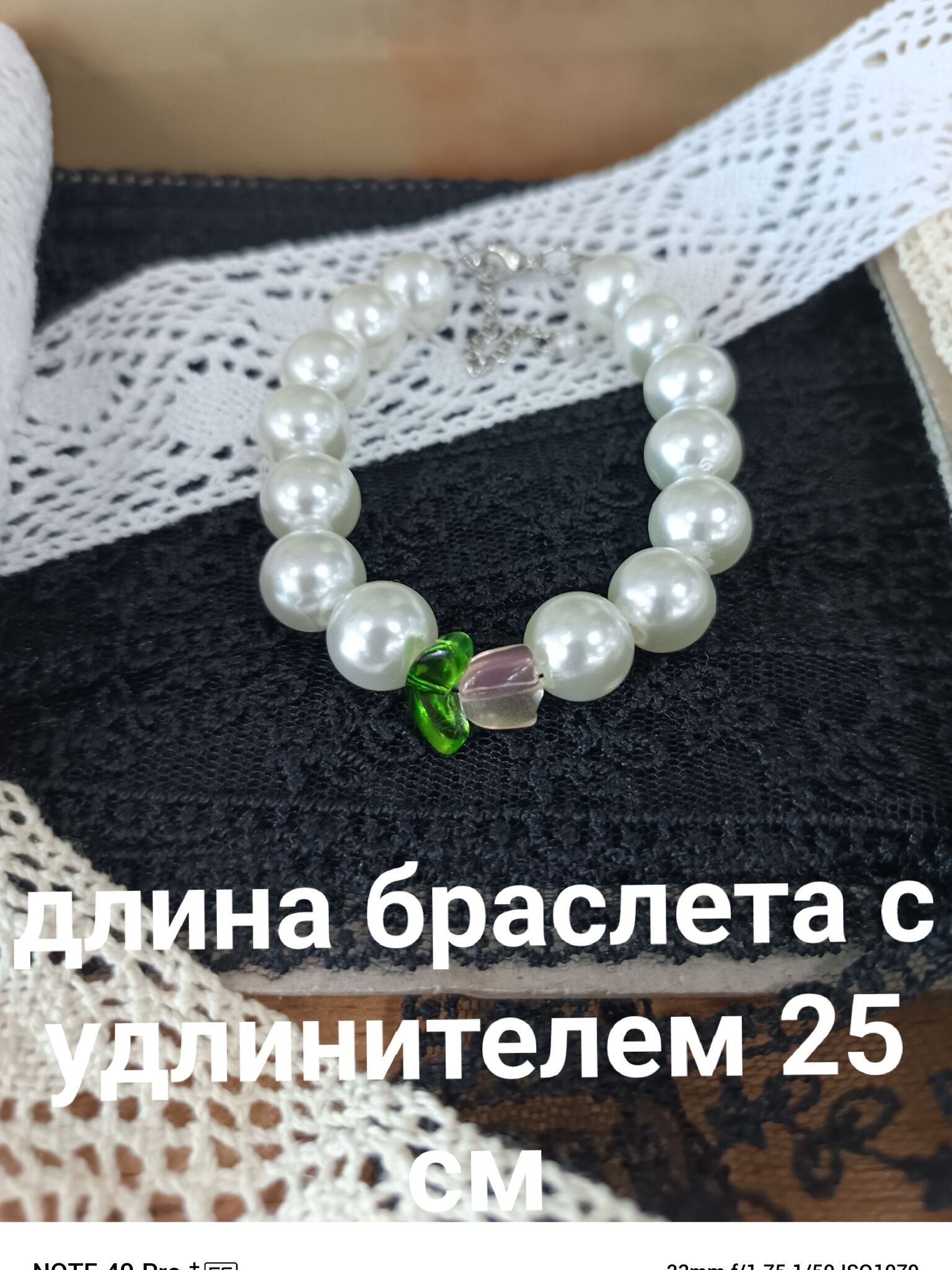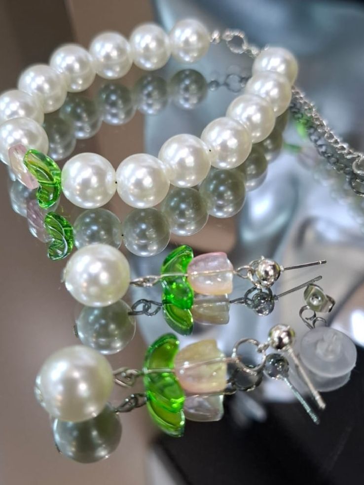 Браслет состоит из нежных жемчужин и стеклянного тюльпана, что придает ему особую красоту и изящество. Он подходит для любого случая - от повседневной жизни до официальных мероприятий.